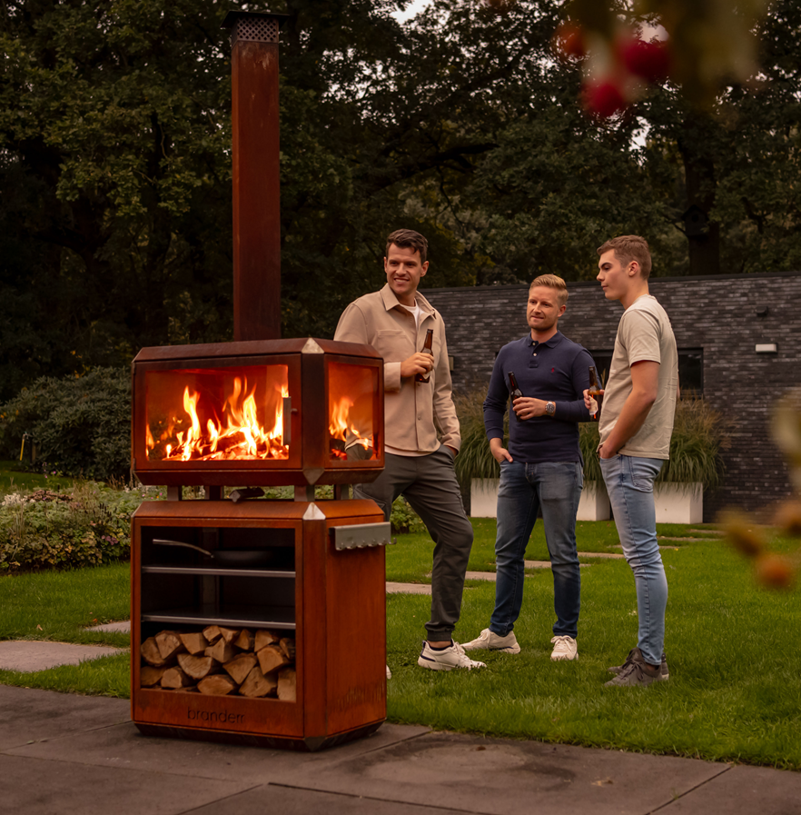 Onze Stoock tuinhaard is robuust, modulair en weerbestendig. Ontworpen om het hele jaar buiten te staan, kan hij volledig worden aangepast aan jouw wensen: vrijstaand of onder een overkapping, met glas of keramische panelen, op hout, gas of bio-ethanol. Voeg accessoires toe zoals wielen, een verlengde pijp of pizza-oven voor extra gemak en plezier.